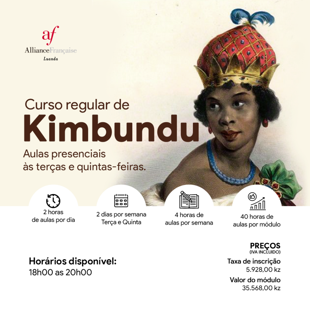 Aprenda o Kimbundu na Alliance Française de Luanda com aulas às terças e Quintas-feiras e diferentes horários. O curso tem duração de um mês e duas semanas por nível e temos várias sessões durante o ano.
